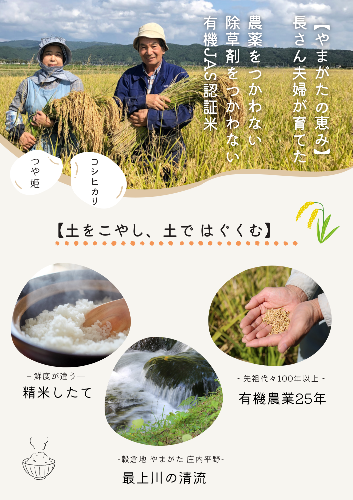 ●有機JAS認証、栽培期間農薬不使用で育てた成長農園の「コシヒカリ」です